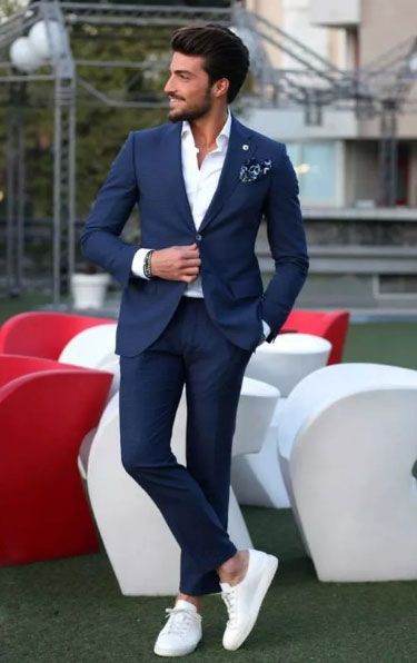我們都知道西裝一般搭配的是皮鞋,這樣會顯得比較正式、紳士。而選擇小白鞋作為搭配,年輕感則比皮鞋要來得強(qiáng)烈一些。西裝搭配小白鞋同樣顯年輕時尚感,一再打破傳統(tǒng)的西裝搭配。